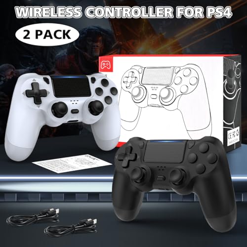Wireless PS4 Controller 2 Pack, Compatible with PlayStation 4 & PC Windows – Black & White